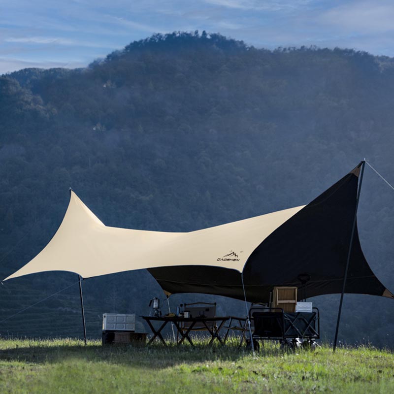 • Schwarzes Vinylzelt für Picknick und Camping im Freien, regenfestes und Sonnenschutzdach, Schmetterlingsvorhangdach für Picknicks