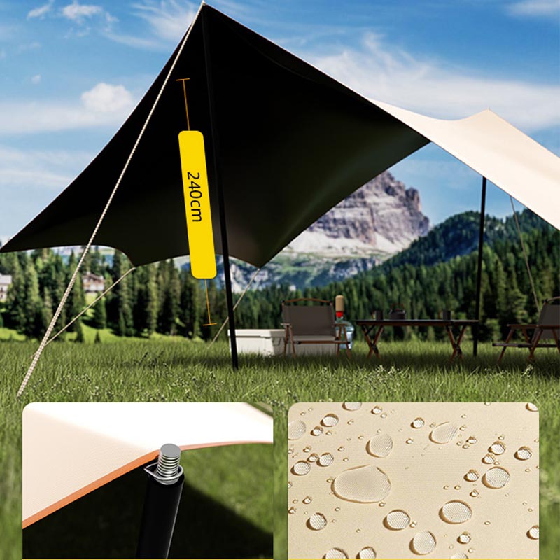 Verfügt über eine schwarze Vinylbeschichtung zum Sonnenschutz und ein hochdichtes Oxford-Gewebe 210D für Reiß- und Verschleißfestigkeit. Ein höherer, dickerer Stahlrahmen sorgt für Stabilität und Windbeständigkeit. Das schmetterlingsförmige Baldachindesign bietet ausreichend Sonnenschutz und eignet sich daher für Familienpicknicks, Strandentspannung und andere Szenarien.
